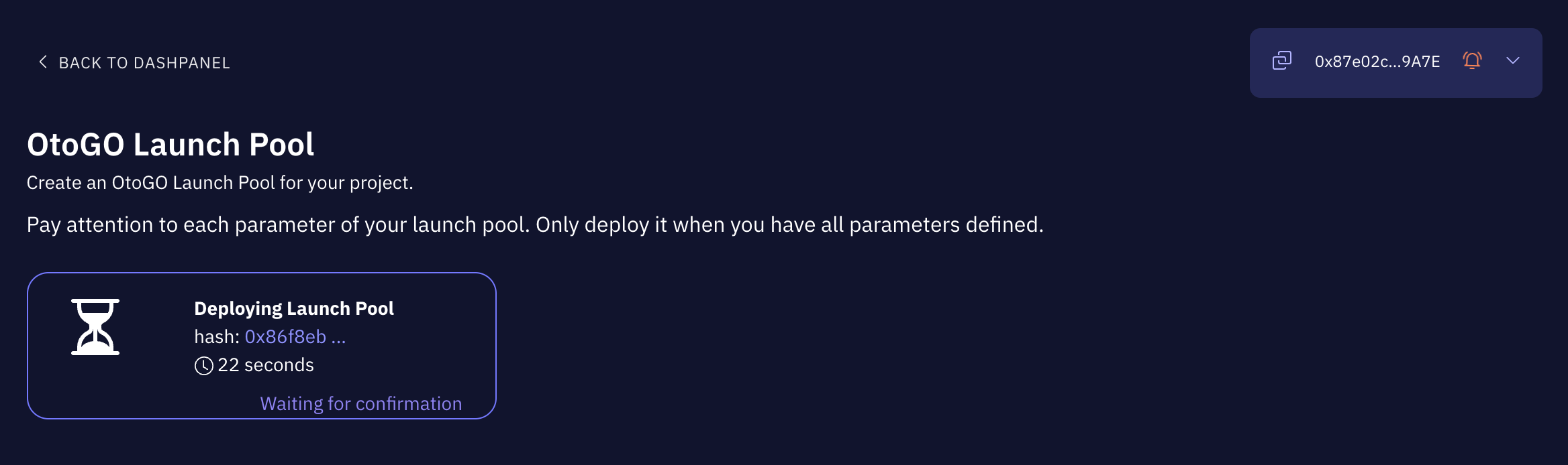 This commences your launchpool’s initialization sequence.